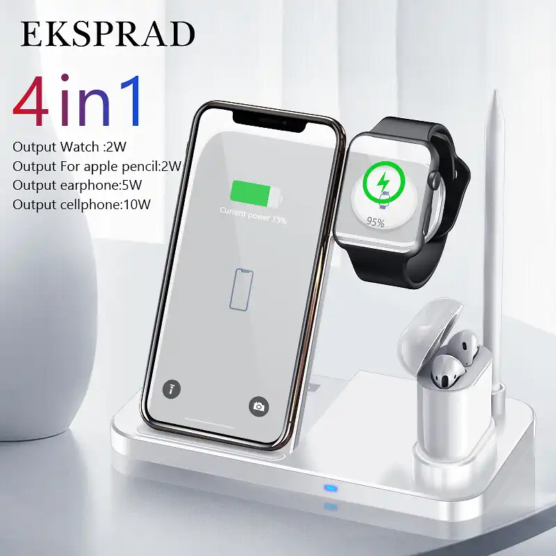 Eksprad 4 In 1 Wireless Charger 10w Fast Charging For Iphone 1111proxxsxrxs Max For Apple Watch 5 4 3 2 Airpods Pencil Pad