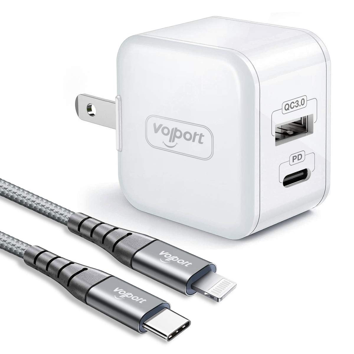 Iphone Usb C Fast Charger Volport 18w Pd 30 Mini Wall Charger Adapter With Type C To Lightning Cable 3ft Mfi Certified For Iphone 11 Pro Max Xs Max