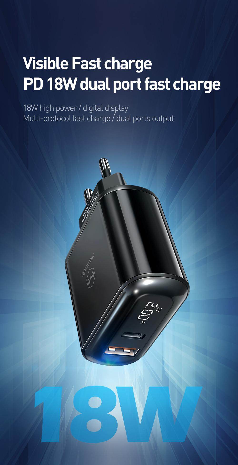 Mcdodo Tampilan Digital Qc30 Pd30 Charger Usb 18w Biaya Cepat Untuk Iphone 11 Pro Huawei Samsung Xiaomi Scp Afc Pengisi Daya Telepon Tipe C