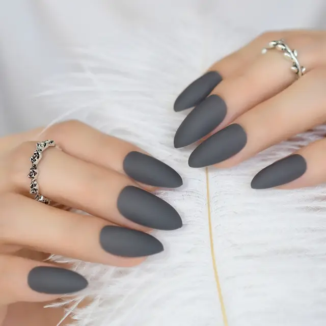 Gummi Oberflache Matte Punkt Falsche Nagel Oma Grau Mandel Gefalschte Nagel Tipps Kunstliche Manikure Tipps Fingernagel 24ct