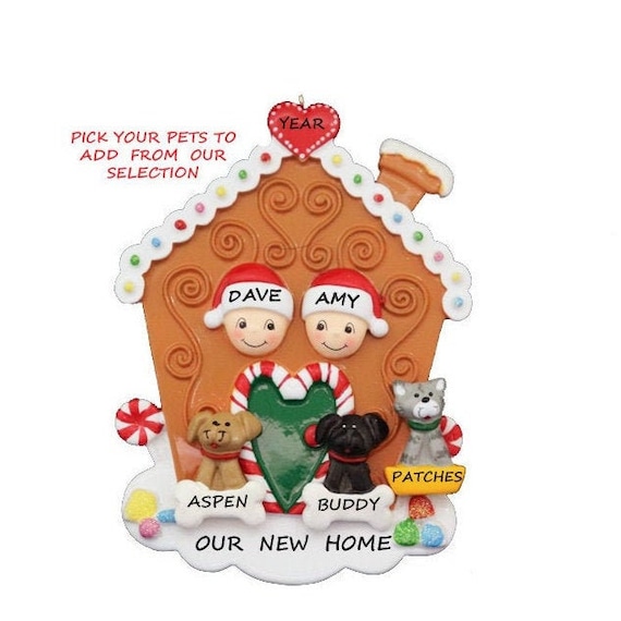 Personalized Couple Gingerbread House Christmas Ornament With 3 Custom Dogs Or Cats Custom Pets Added Dogs Or Cats Couple Ornament