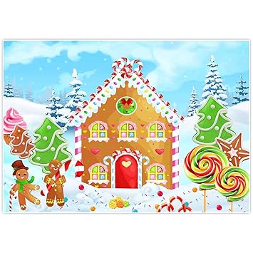 Allenjoy 8x6ft Gingerbread House Backdrop Cookie Exchange Supplies Cartoon Fantasy Candyland Christmas Family Xmas Party Boy Girl Newborn Baby Shower